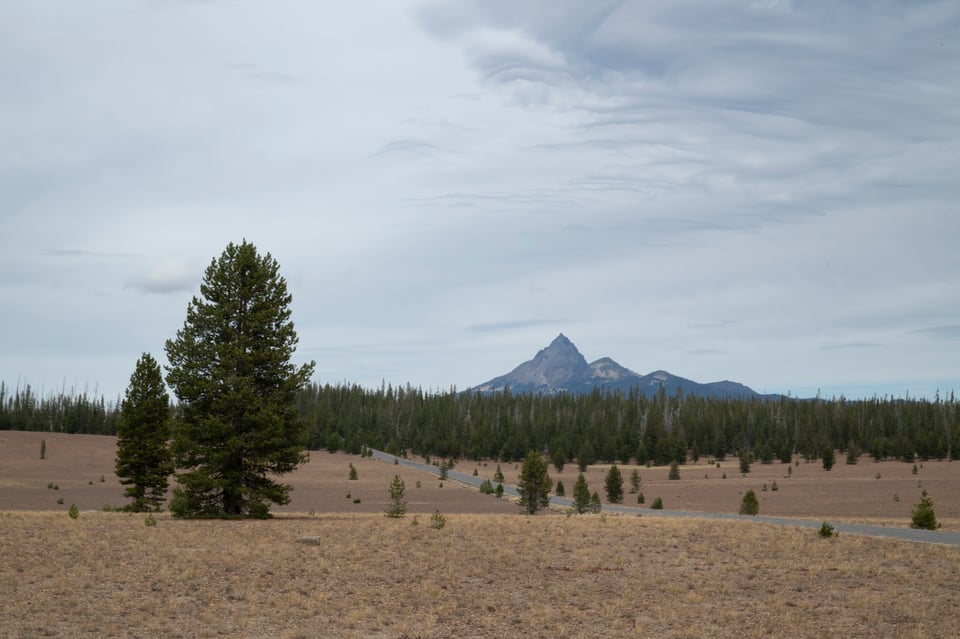 The road to the south out of Bend, 97, starts out as a four lane and then diminishes to a two lane road pretty quickly, like 20 miles or so out of town. Pine forests grow close to the side of the road, so you don’t see much besides trees and the road in front of you. And the traffic, which seemed pretty thick at first but then tapered off so that by the time I was at Crescent, it was basically just me. I do like finding that spot in the pattern where the cars around, behind and ahead, are over the horizon and can’t be seen or heard.