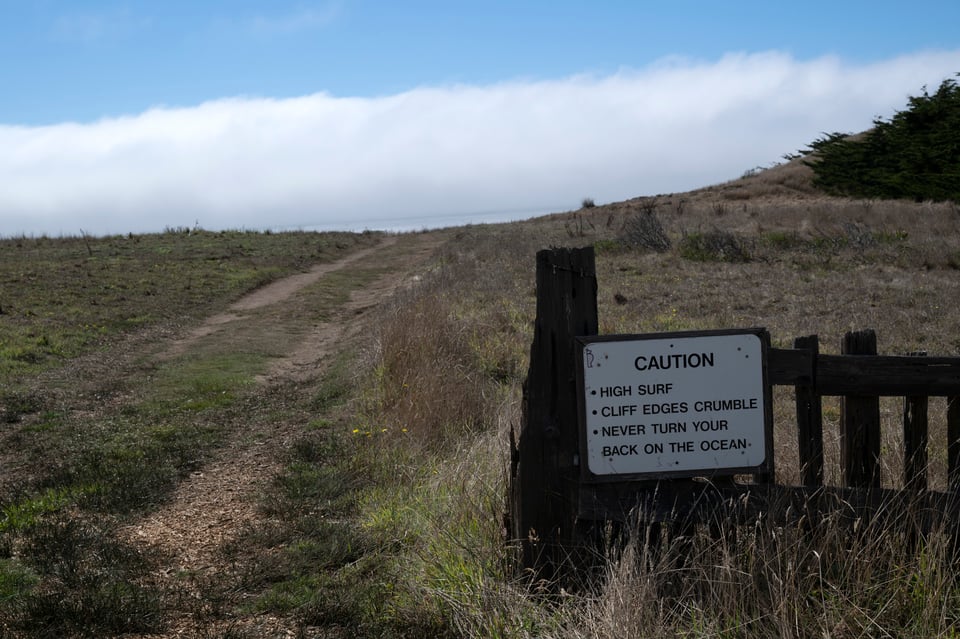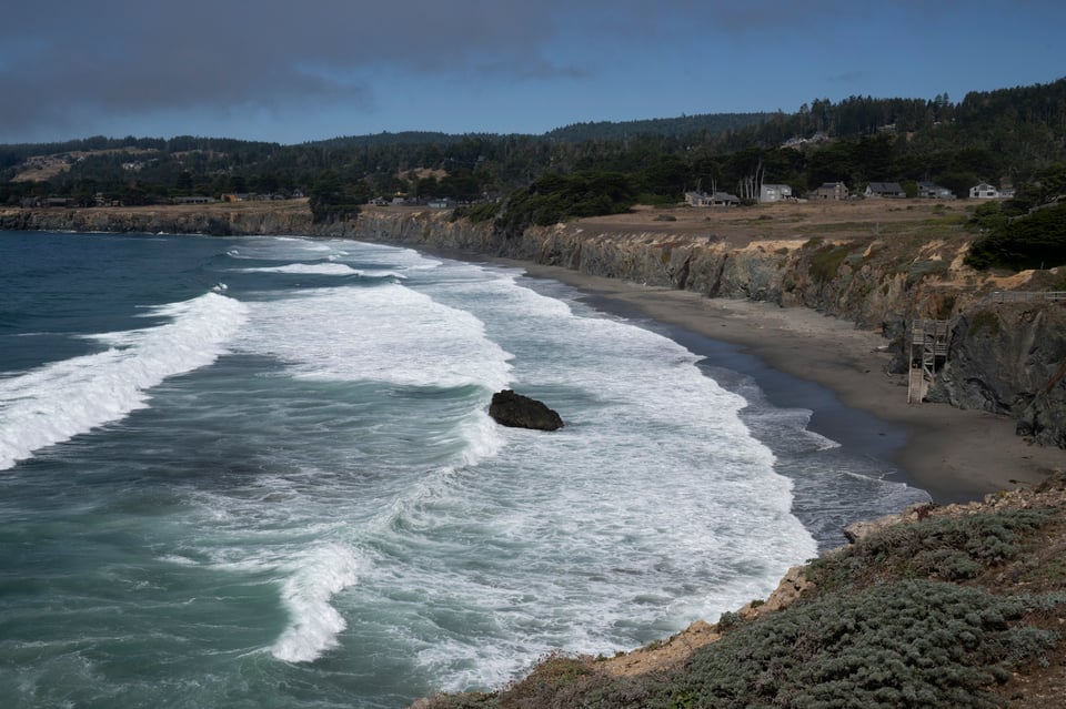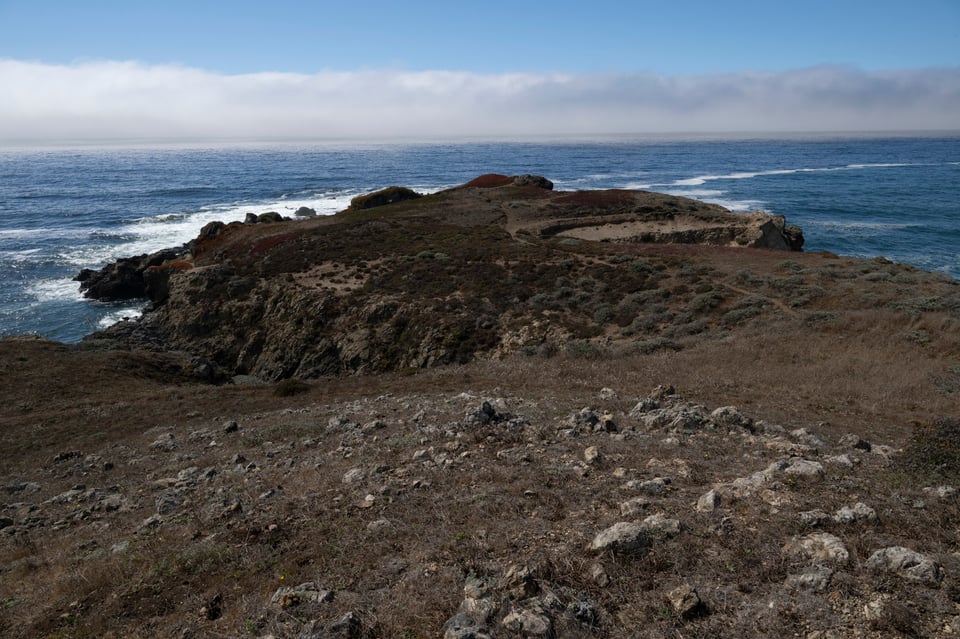 Anyway, immediately after lunch I was cruising through Sea Ranch, which is justly famous and probably worth a day trip by itself. There was a beach access right next to the Sea Ranch Lodge, and the fog had drawn out to sea a bit, so I stopped to walk out and see what I could see. While I was out there, the strangest thing happened. I saw a guy in a Fedex uniform sprinting out towards me. At first I thought he might be security telling me I took the wrong path and needed to leave, but then as I was leaving I saw him again, getting into a fedex van, logo and all. No idea what he was doing sprinting out there in the middle of the afternoon. There wasn’t anyone to deliver anything to, certainly.