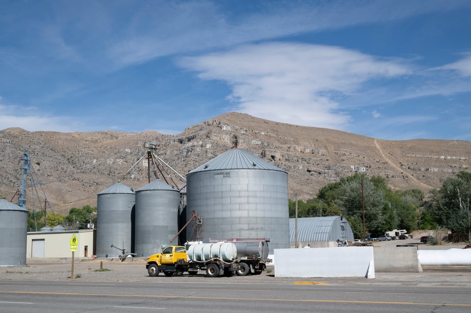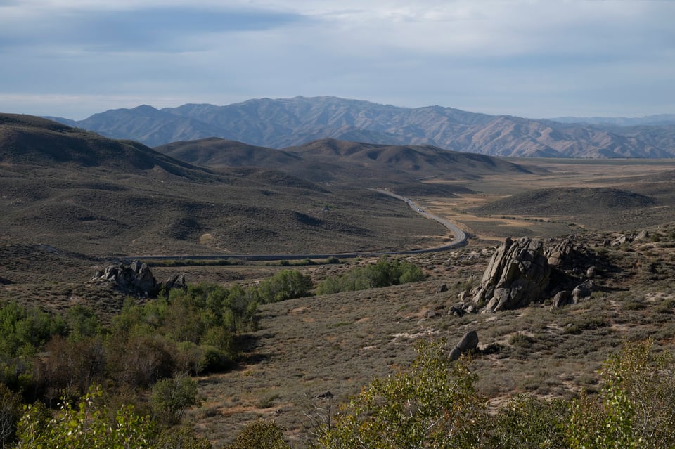 Finished up there and rode on; the road curved through some foothills and then leveled out into a long mostly straight 80 mile stretch across central Idaho. Big beautiful mountains to the north and off in the distance to the south. Huge fields planted with what I assume were potatoes. I also discovered, because I ran out of foam earplugs, that at least some of my aversion to speed is a noise sensitivity issue. I put in the custom ones, which are a lot better at blocking noise, and sure enough, going 65 or 70 was no big deal.